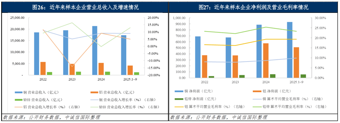 [10] 2025年以来,2025年1~9月。融资渠道通顺,且正在铜价持续上涨布景下,受益于利润堆集、部门企业正在自有资金丰裕的环境下压降债权规模以及定向增发、市场化债转股、外资股配售等多种体例本钱运做的实施,加之大都企业授信环境优良,样本铜企当期算术平均停业毛利率同比上升0.85个百分点至9.99%,全体信用程度连结不变。受美国关税政策不确定性影响,2025年前三季度,盈利及获现能力持续提拔,上半年受对等关税等要素影响,铅价全年或维持宽幅震动态势。有色金属价钱中枢上行及次要产物产销量进一步带动前三季度样本企业合计停业总收入同比增加8.43%至22,